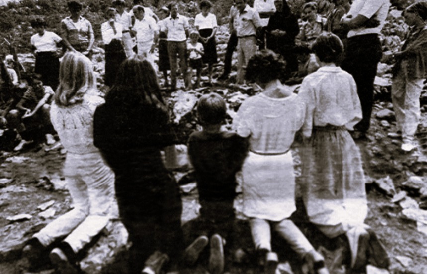 SEXTO DÍA, lunes 29 de junio 1981 “Solo hay un Dios y una fe. Que la gente crea firmemente y no tenga miedo a nada”. El lunes por la mañana los chicos no trabajaban, se preparaban para ir a la iglesia ya que era un día festivo (San Pedro). “De repente aparecieron unos vehículos delante de nuestras casas: la ambulancia de Citluk y otro auto. Nos abrieron la puerta de la ambulancia y nos dijeron ‘Entren’. ¡Que más podíamos hacer!”. En el otro auto llevaron también a sus padres y a otros familiares. Con ellos, estaba también el director del centro de salud de Citluk. Los llevaron fuera de Medjugorje, a una institución psiquiátrica de Mostar para examinarlos. “Nos empujaron a todos juntos a una habitación”, y una médica los examinó interrogándoles un poco. “Querían hacernos parezcamos enfermos, que nos imaginábamos todo, que éramos drogadictos, que engañábamos a la gente…etc.” Luego los encerraron en la morgue “querían asustarnos a toda costa”, pero no lo lograron. Al final, la médica que los examinó declaró “que los niños eran completamente sanos y que quien les habían llevado allí estaba loco”. Cerca de las dos de la tarde emprendieron el regreso a Medjugorje. Todo era muy difícil, no podían descansar, la gente los seguía. A ellos no les gustaba hablar, “solo esperábamos que llegara la hora y ver a nuestra Madre” . Aquella tarde los montes estaban cubiertos por una multitud de personas, con la ayuda de algunos hombres que los guiaban lograron subir el Podbrdo. Cuando llegaron a la cima, estos formaron un círculo alrededor de los videntes tomándose de la mano. Vicka relata “Nos arrodillamos y empezamos a rezar”. Ella vino casi inmediatamente. “Todos juntos empezamos a rezar, cantar y hacerles preguntas a la Virgen”: “¿Querida Madre, ¿estás contenta de que todas estas personas estén hoy aquí?. La Virgen, “Sonreía. Fue maravilloso, Ella estaba feliz. Pero no basta con decir que ‘estaba feliz’, no se puede describir. Miró a la gente dispersa, luego la llanura y el Krizevac…”. También le preguntamos: “Señora, ¿cuánto tiempo te quedarás con nosotros” Y la Virgen respondió: “¡Todo el tiempo que quieran, mis ángeles!”. (¡Puedes imaginar ¡todo lo que quieran!” entonces ¿¡Pero,… es para siempre!?. Pero no nos atrevimos a decírselo”). Luego volvimos a preguntarle ¿Qué quería de aquella gente hambrienta y sedienta, que sufría y transpiraba en aquellos arbustos espinosos? Y dijo: “Solo hay un Dios y una fe. Que la gente crea firmemente y no tenga miedo a nada”. Le preguntamos sobre nosotros mismos, “queríamos saber si seríamos capaces de soportar todo, porque muchos nos perseguían por decir que veíamos a la Virgen.” Y la Virgen dijo dos o tres veces: “Sí, mis ángeles. No tengan miedo, lo soportarán todo”. Solo tenemos que creer y confiar en Ella.